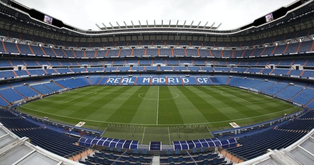 Es el estadio del Real Madrid, situado en Madrid, España. Con una capacidad de 81.044 espectadores, es uno de los estadios de futbol más grandes de Europa. Ha sido sede de importantes partidos internacionales y es conocido por su ambiente vibrante y su impresionante arquitectura.